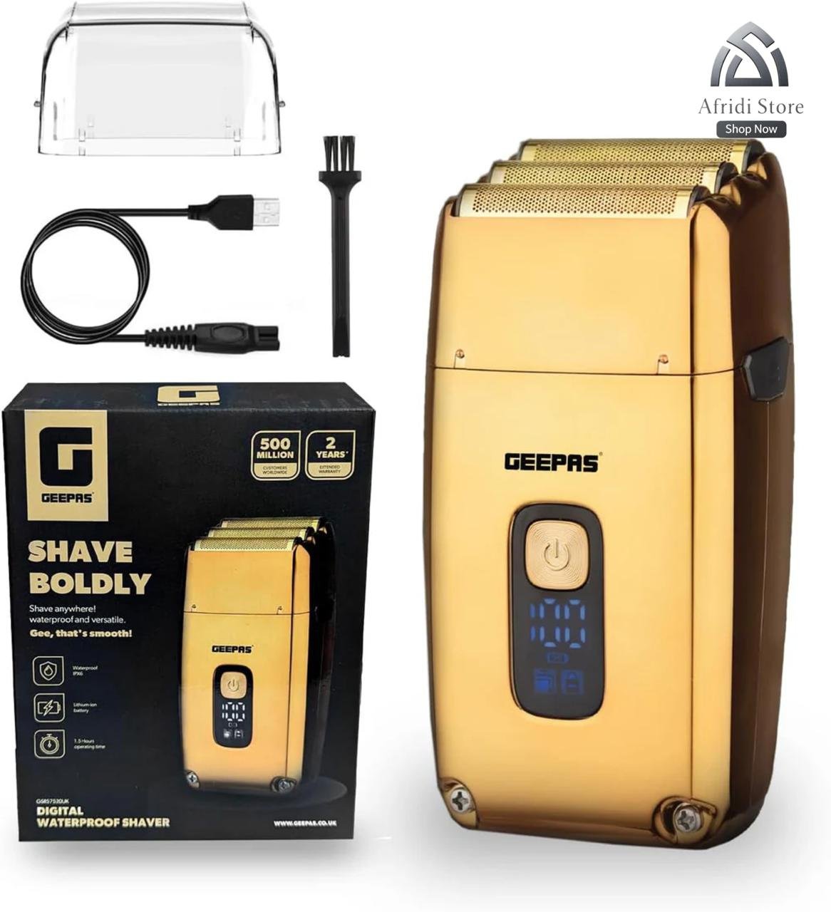 Engineered for durability, the Geepas Premium Waterproof Digital Shaver resists water splashes (IPX6 rating) and comes as a complete kit with cleaning brush, charging stand, and protective pouch for hassle-free maintenance. Pakistani buyers appreciate its value in e-commerce stores like Afridi Store, blending affordability with high-performance grooming