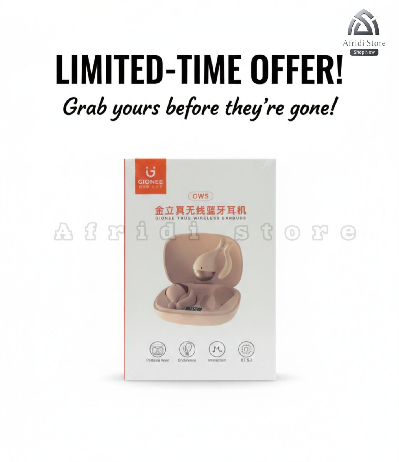GIONEE OWS True Wireless Earbuds come with Bluetooth 5.3, stable connection, long battery life, and a stylish open-wear design—perfect for calls, music, and daily use.